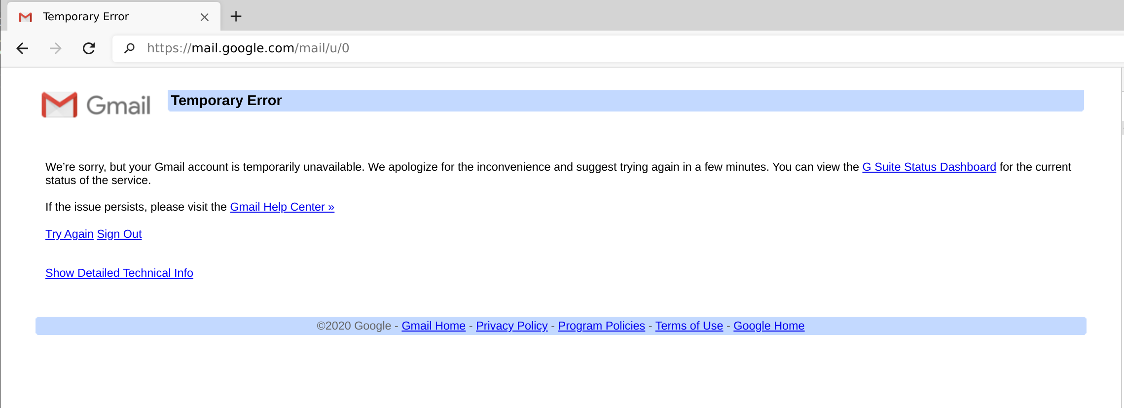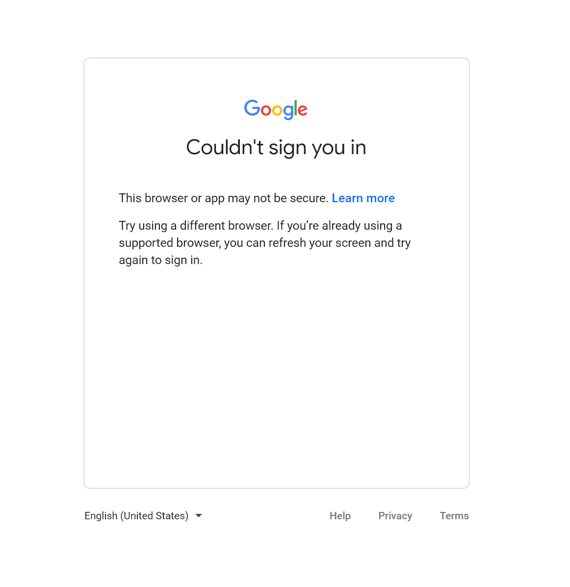 We have received reports that some users are not able to log into gmail using the MirageID browser. This is an intermittent thing, and appears to impact some accounts and not others. The accounts that are impacted will see a message similar to this: